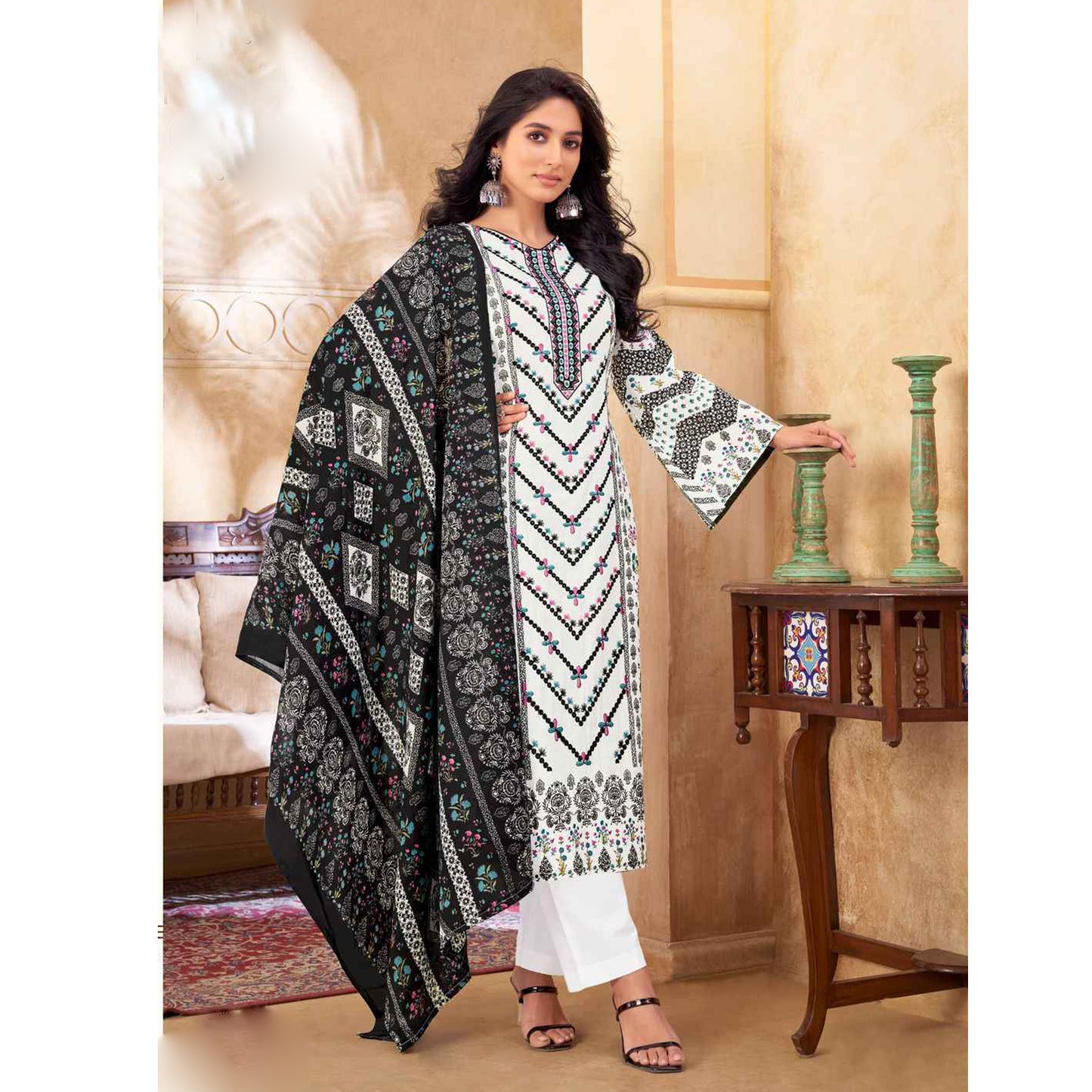 Cotton Casual Wear Printed Shalwar Kameez Palazzo-Pant Dupatta Suit