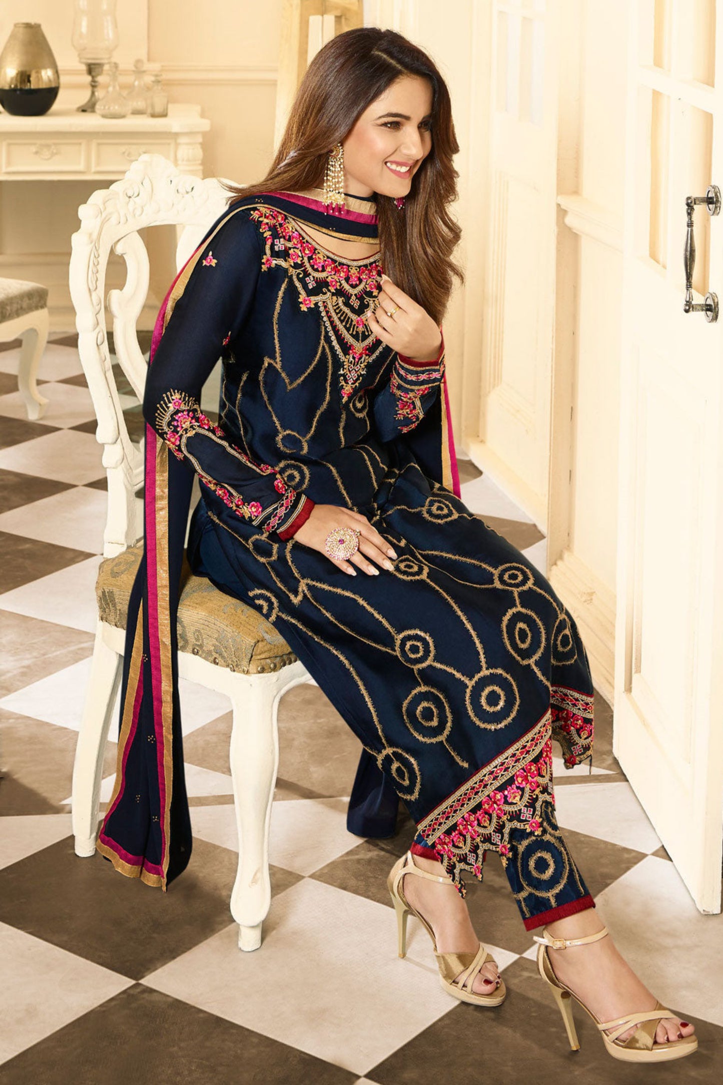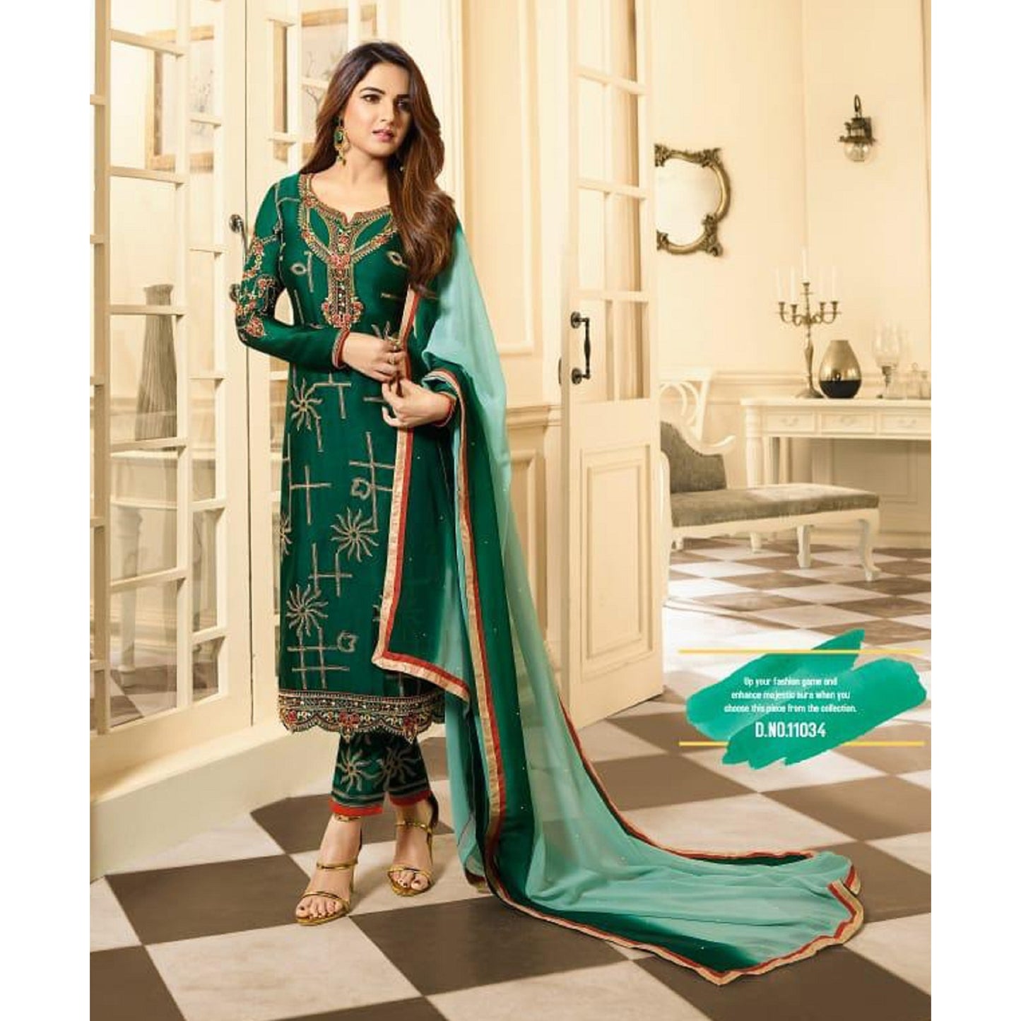 Satin Georgette Heavy Embroidery And Additional Hand Work and Diamond