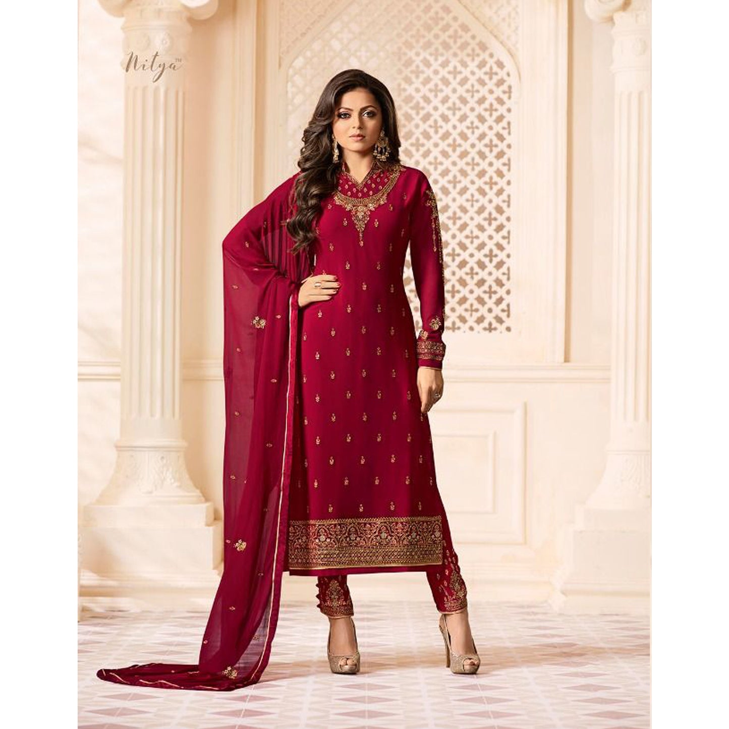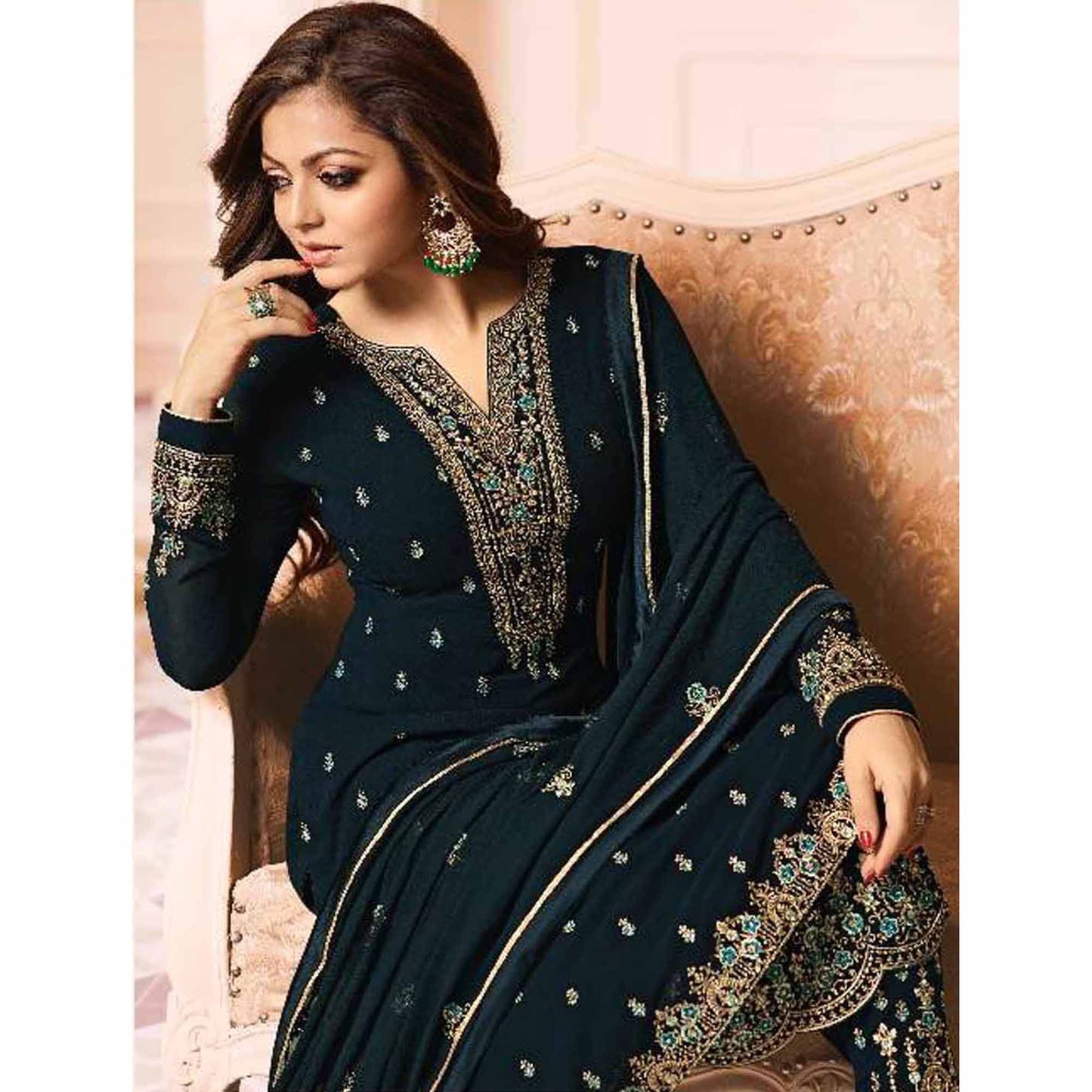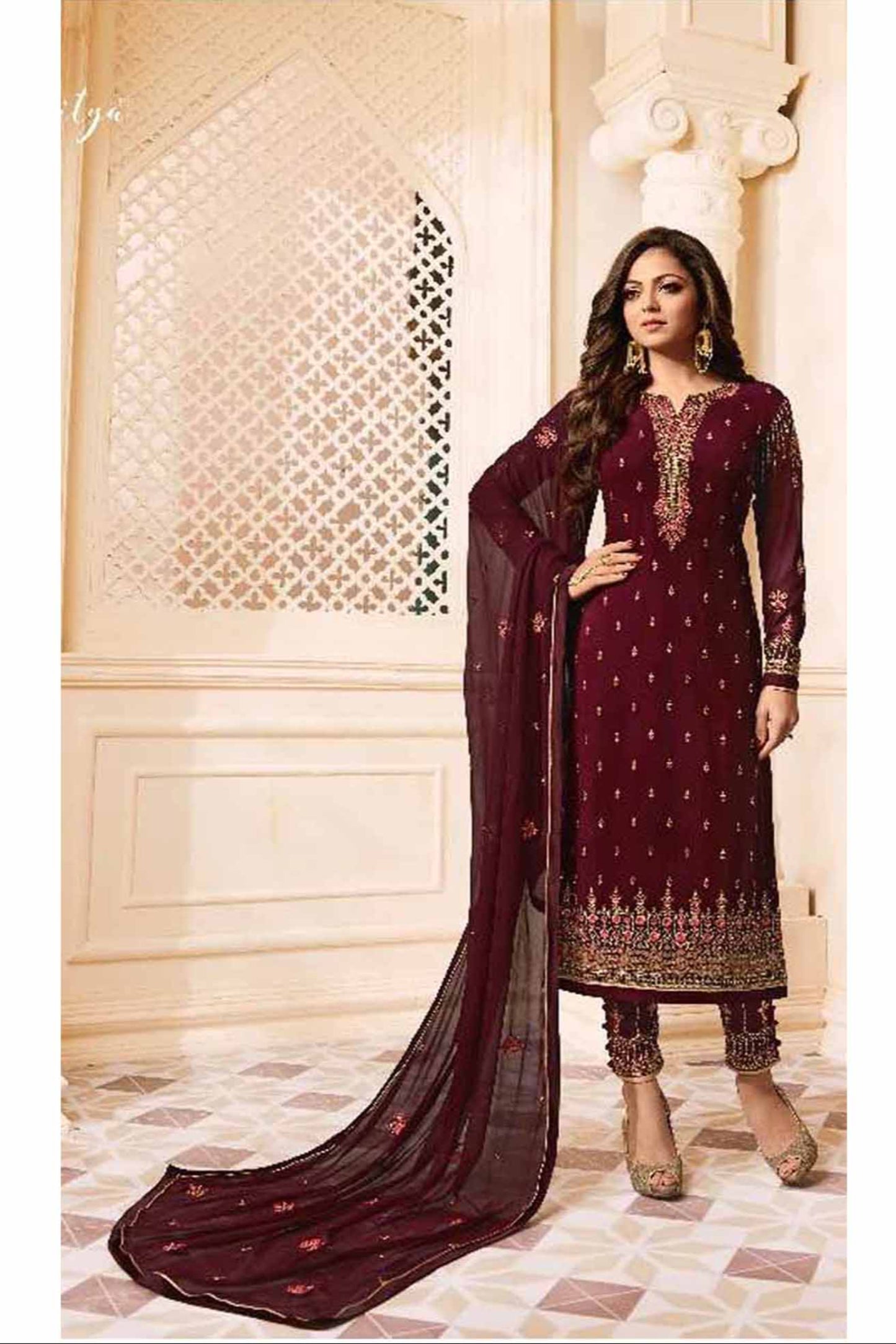 Faux Georgette With Embroidery Work